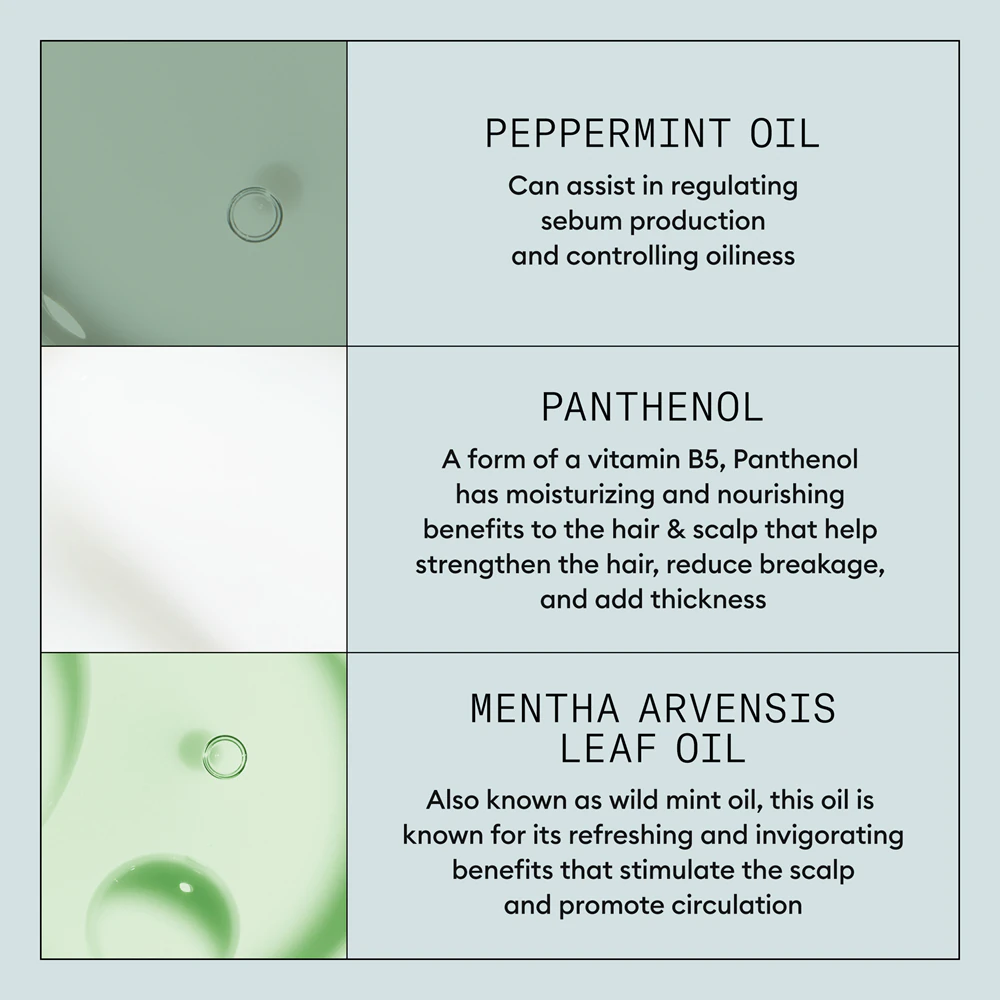 • ulei din frunze de mentă sălbatică – stimulează circulația sângelui la nivelul scalpului